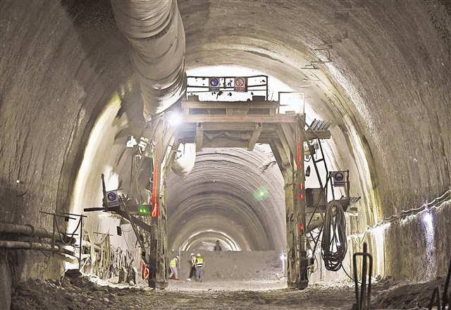 图为技术工人正在进行贯通后续施工。